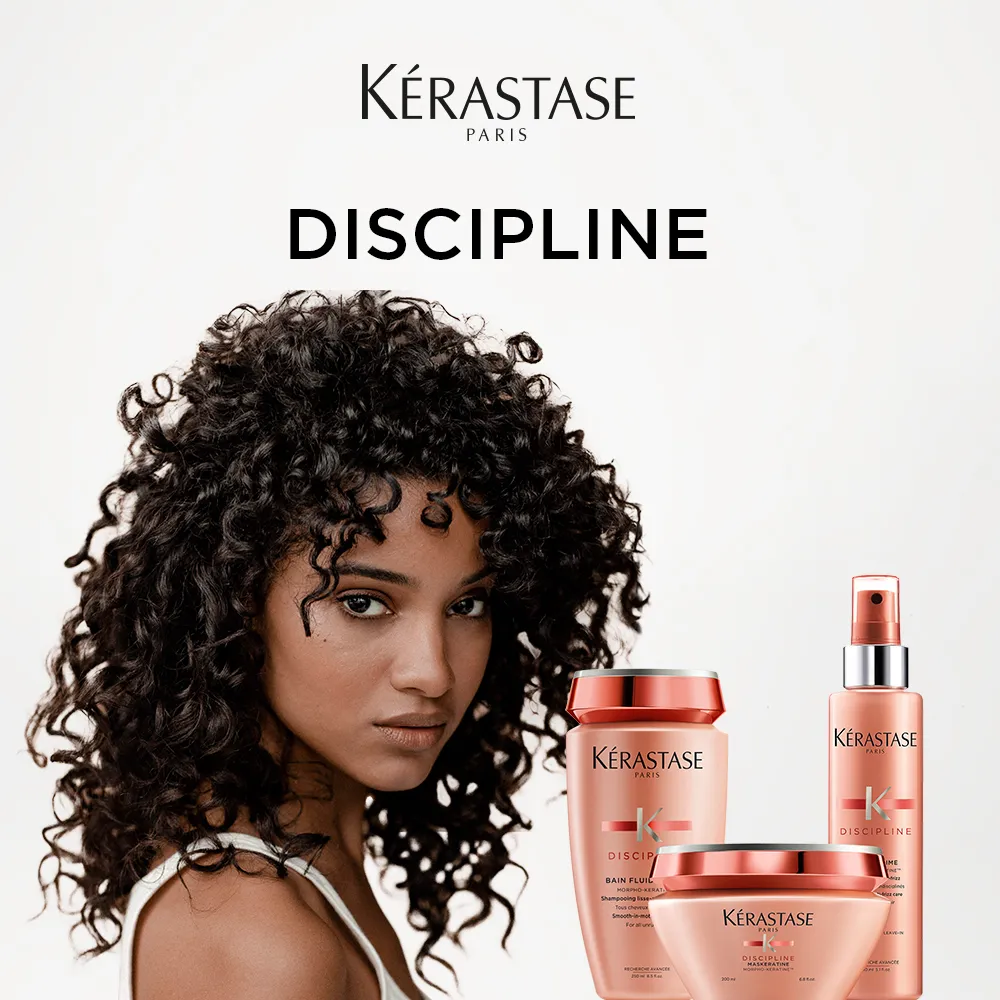 Kérastase Discipline ist die Luxus-Pflegelinie für widerspenstiges und lockiges Haar. Mit der höchsten Pro-Keratin Konzentration aller Kerastase Produktfamilien sorgen die Discipline Produkte für eine geglättete Haarfaser für gesundes, weiches und diszipliniertes Haar.