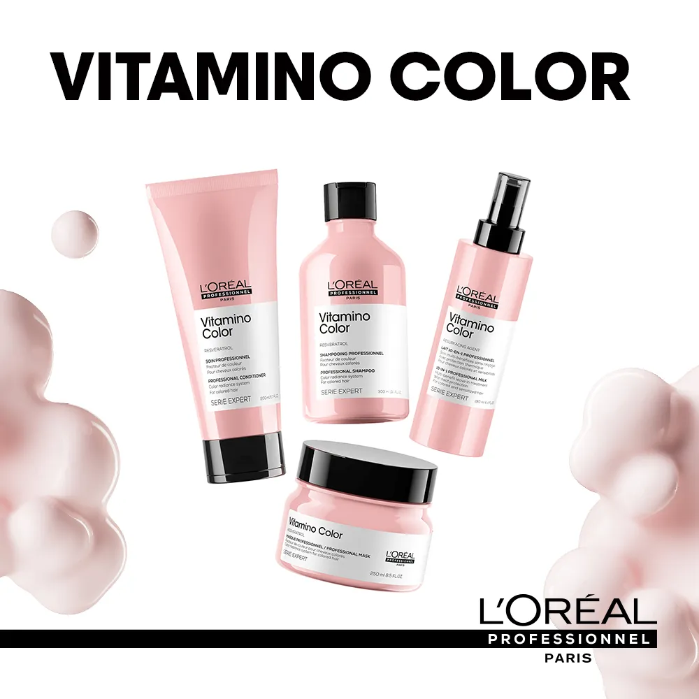 L’Oréal Professionnel Paris ist eine der besten Marken im Bereich der Haarpflege. Intensive Forschung und jahrelange Erfahrung ermöglichen es, laufend innovative Produkte zu entwickeln, die exakt auf ein spezielles Haarproblem zugeschnitten sind. Vitamino Color ist eine Pflegeserie, die für gefärbtes Haar entworfen wurde. Sie bietet bis zu 8 Wochen Schutz vor dem Verblassen, 6x mehr Glanz und sichtbare Geschmeidigkeit.