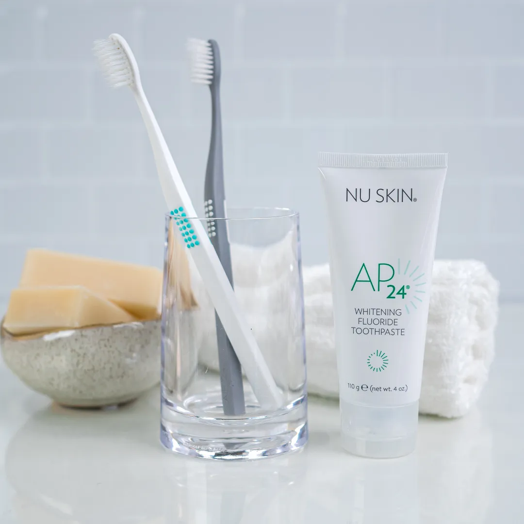 Zahnpflege kann so einfach und dennoch so effektiv sein: Mit den Nu Skin AP 24 Produkten bei BellAffair. Sichere dir deine Nu Skin Zahnpasta für hellere Zähne und Schutz gegen Ablagerungen und Plaque und eine innovative Zahnbürste, die sanft zu Zähnen und Zahnfleisch ist und Ablagerungen an schwer zugänglichen Stellen entfernt.