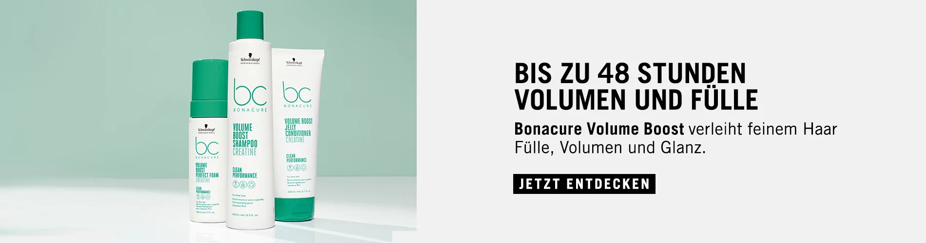 Feines und kraftloses Haar erhält mit dem Schwarzkopf BC Volume Boost Set fühl- und sichtbar mehr Volumen, das bis zu 48 Stunden anhält. Die drei Produkte holen das Maximum aus schlaffem Haar heraus.  Inhalt von Schwarzkopf BC Volume Boost Set Schwarzkopf BC Volume Boost Shampoo 250 ml Schwarzkopf BC Volume Boost Jelly Conditioner 200 ml Schwarzkopf BC Volume Boost Perfect Foam 150 ml Ergebnisse mit dem Schwarzkopf BC Volume Boost Set mehr Volumen vom Ansatz bis zur Spitze volleres Haargefühl Griffigkeit Elastizität  Glanz