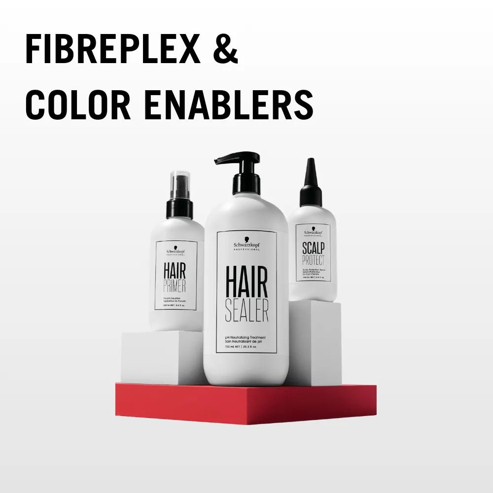Das Schwarzkopf Fibreplex und Color Enabler Produktsortiment ist geprägt durch sein innovatives, ausgeklügeltes System zur Stärkung der Haarstruktur während einer Blondierung, Aufhellung oder Coloration. Das kompakte Sortiment schützt das Haar während jedem Colorservice und hat mit den Produkten für zu Hause ein nachhaltiges Programm zum dauerhaften Erhalt einer gesunden Haarstruktur geschaffen.