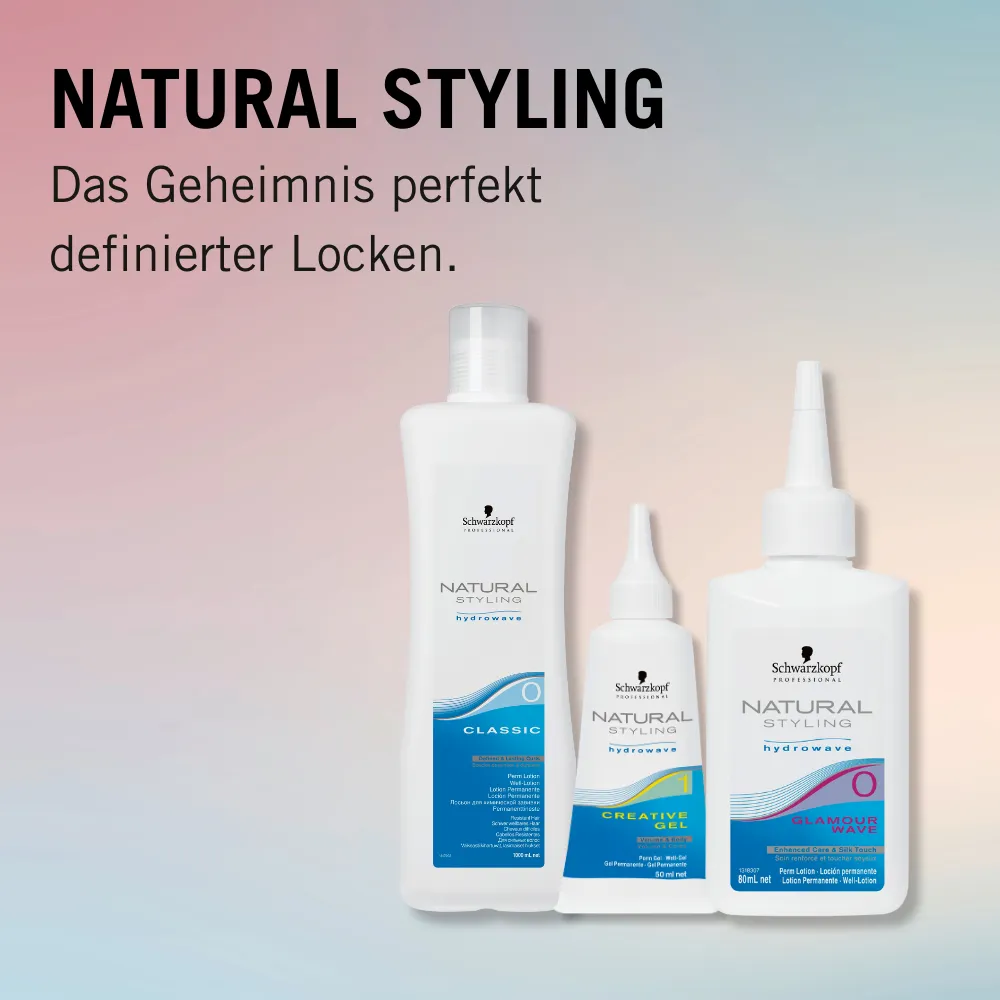 Die umfangreiche Natural Styling Linie reicht von Produkte zur Vorbehandlung, über den Wellprozess bis hin zur Nachbehandlung. Je nach Haartyp gibt es verschiedene Wellsysteme. So werden auch in strapaziertes, gefärbtes oder schwerwellbares Haar traumhafte und gesunde Locken oder Wellen gezaubert, weil die unterschiedlichen Präparate exakt auf die Bedürfnisse des Haares abgestimmt sind.